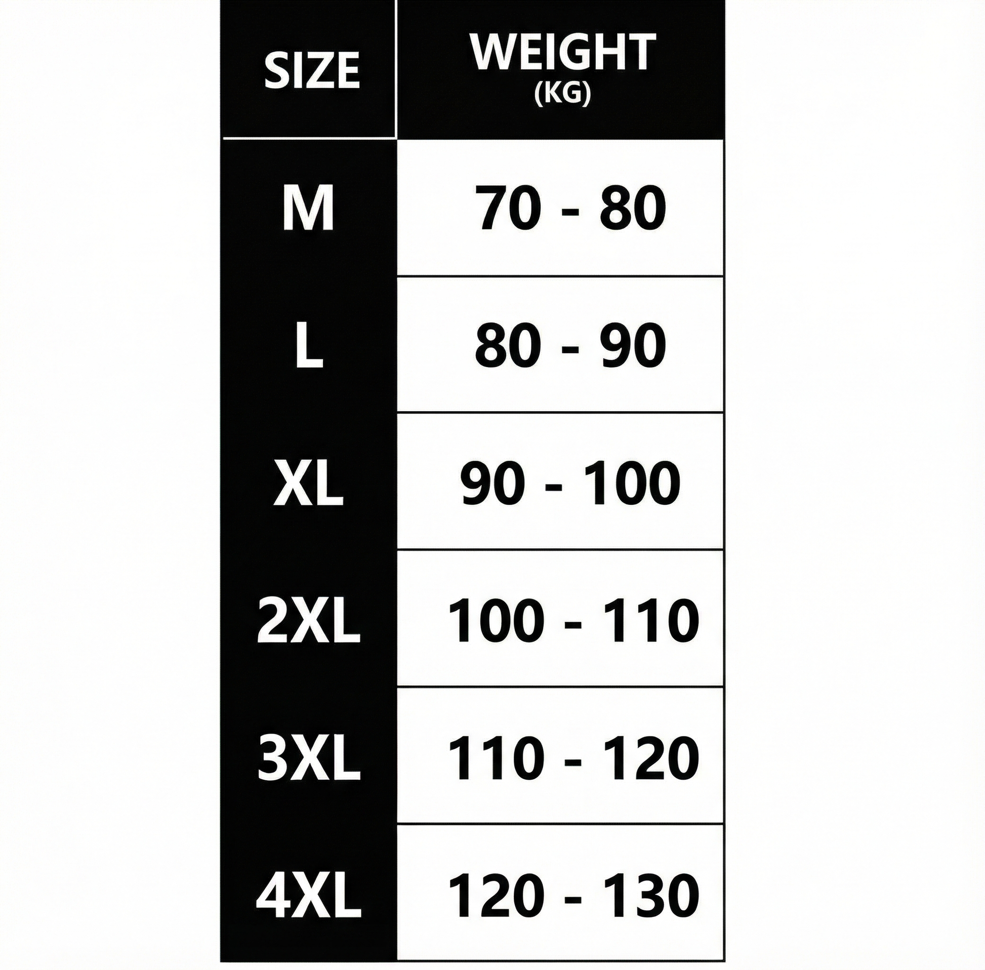 ✔ Available in 6 sizes (60–150 kg)